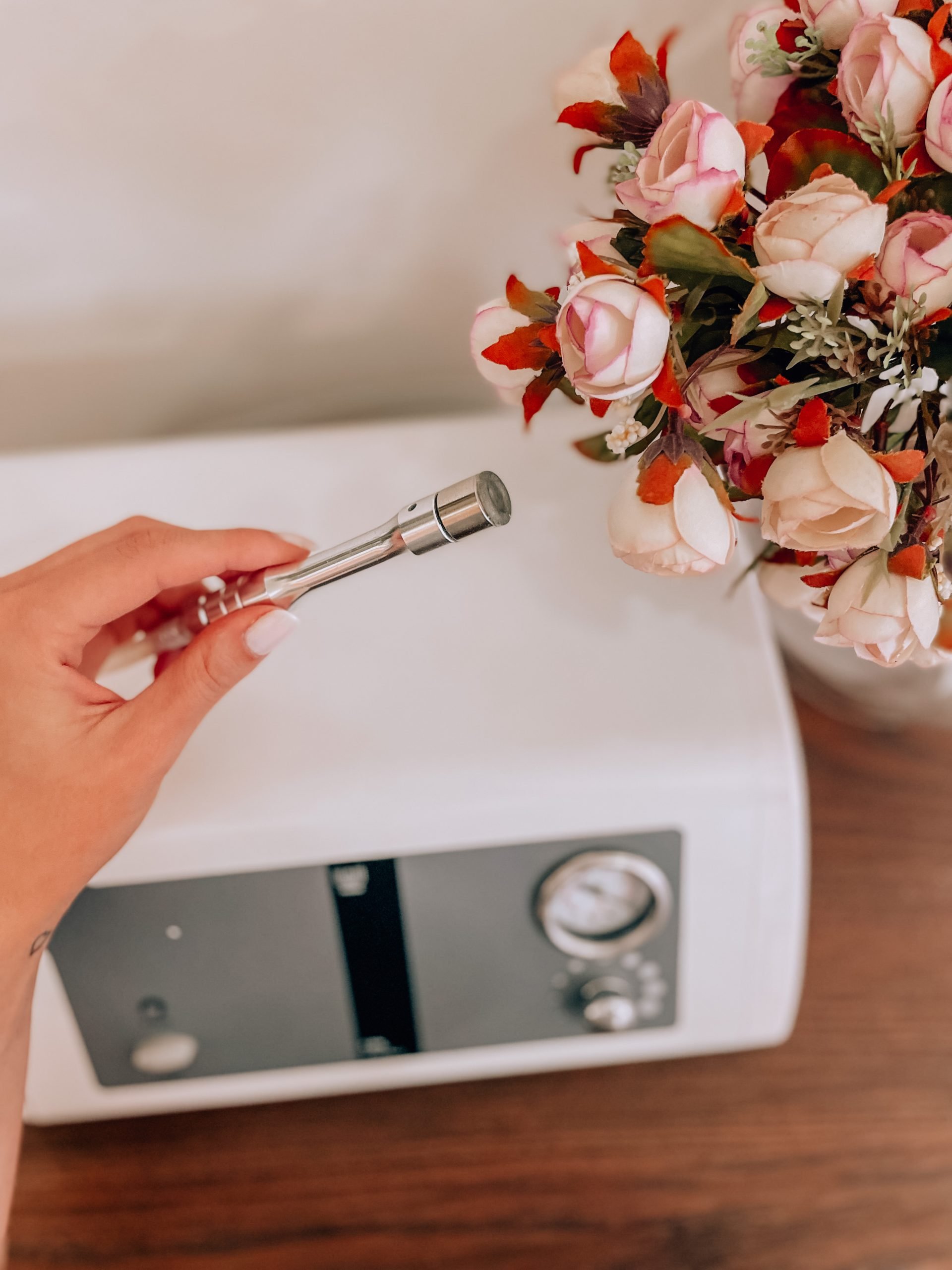 🔹 Βήμα 2: Με τη βοήθεια της ειδικής συσκευής δερμοαπόξεσης, απομακρύνουμε τα νεκρά κύτταρα και βελτιώνουμε την υφή του δέρματος.